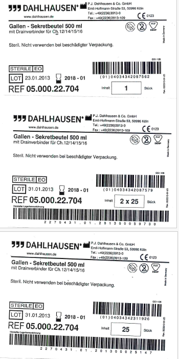 La poche de bile avec raccord de drainage, valve d’évacuation et suspension servent au raccordement direct à un drain de taille Ch 12, 14, 15 et 16, sans tubulure à sécrétions.