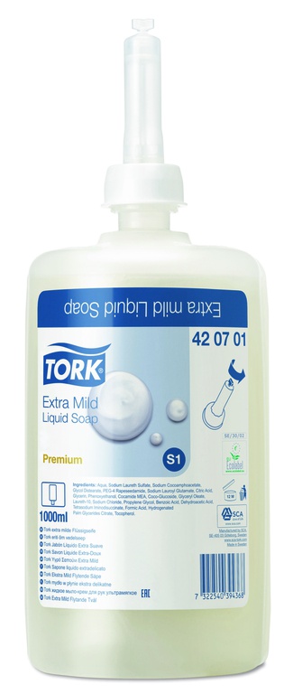 [104000701] Savon liquide Tork Premium 1000ml (sans parfum, extra douces)