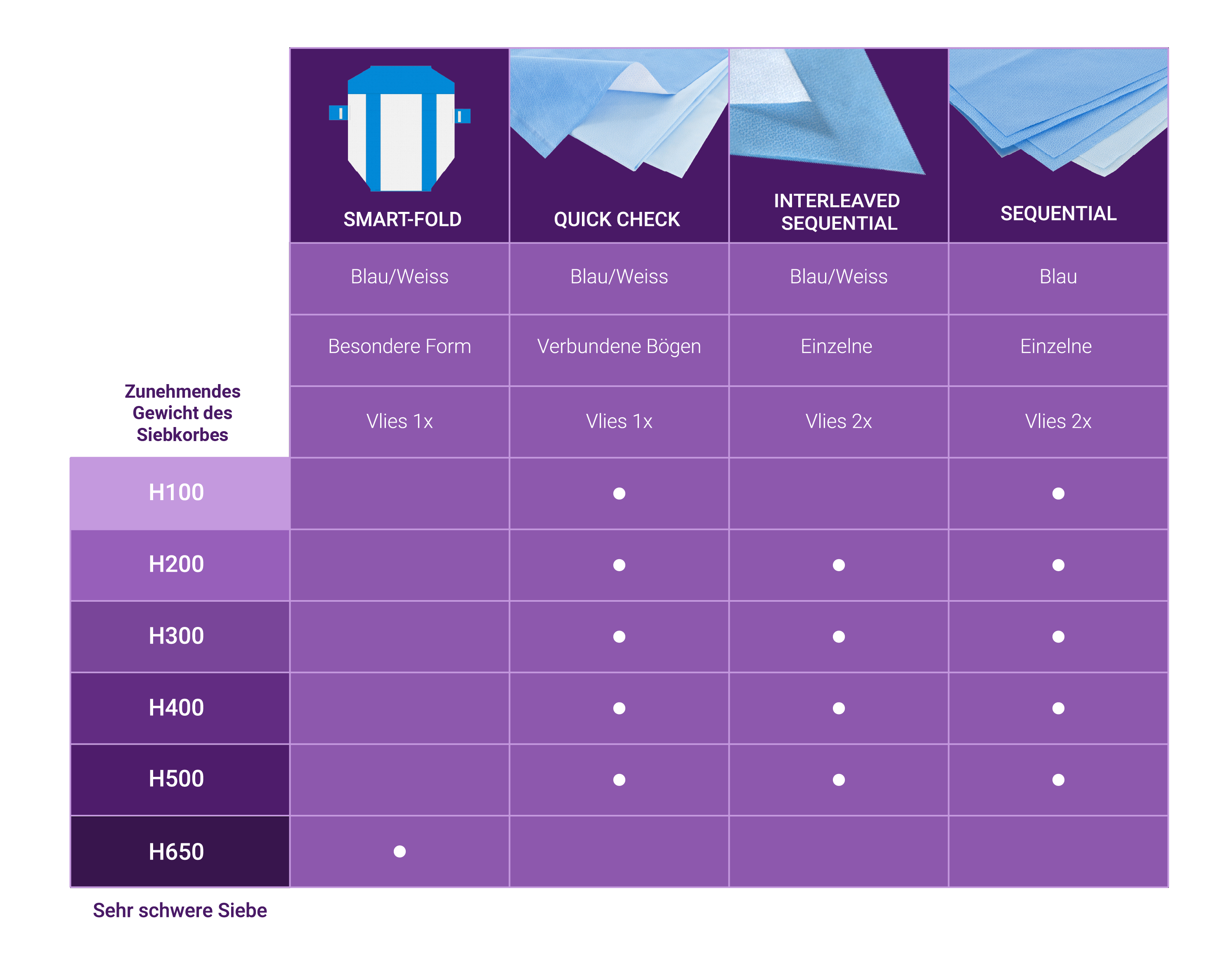 Besteht aus zwei am Rand thermisch verbundenen Vlieslagen in zwei Farben: Blau und Weiss. Es ermöglicht die doppellagige Verpackung in einem Schritt, spart dadurch 49% Zeit und ermöglicht eine schnellere Erkennung, ob die Sterilität gefährdet ist.