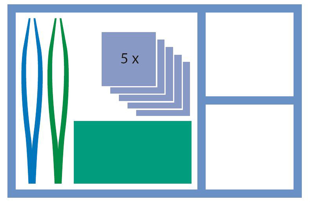 1 Abdecktuch 45x50cm, 1 Pinzette anatomisch blau, 1 Pinzette anatomisch grün, 5 Vliesstoffkompressen 7.5x7.5cm